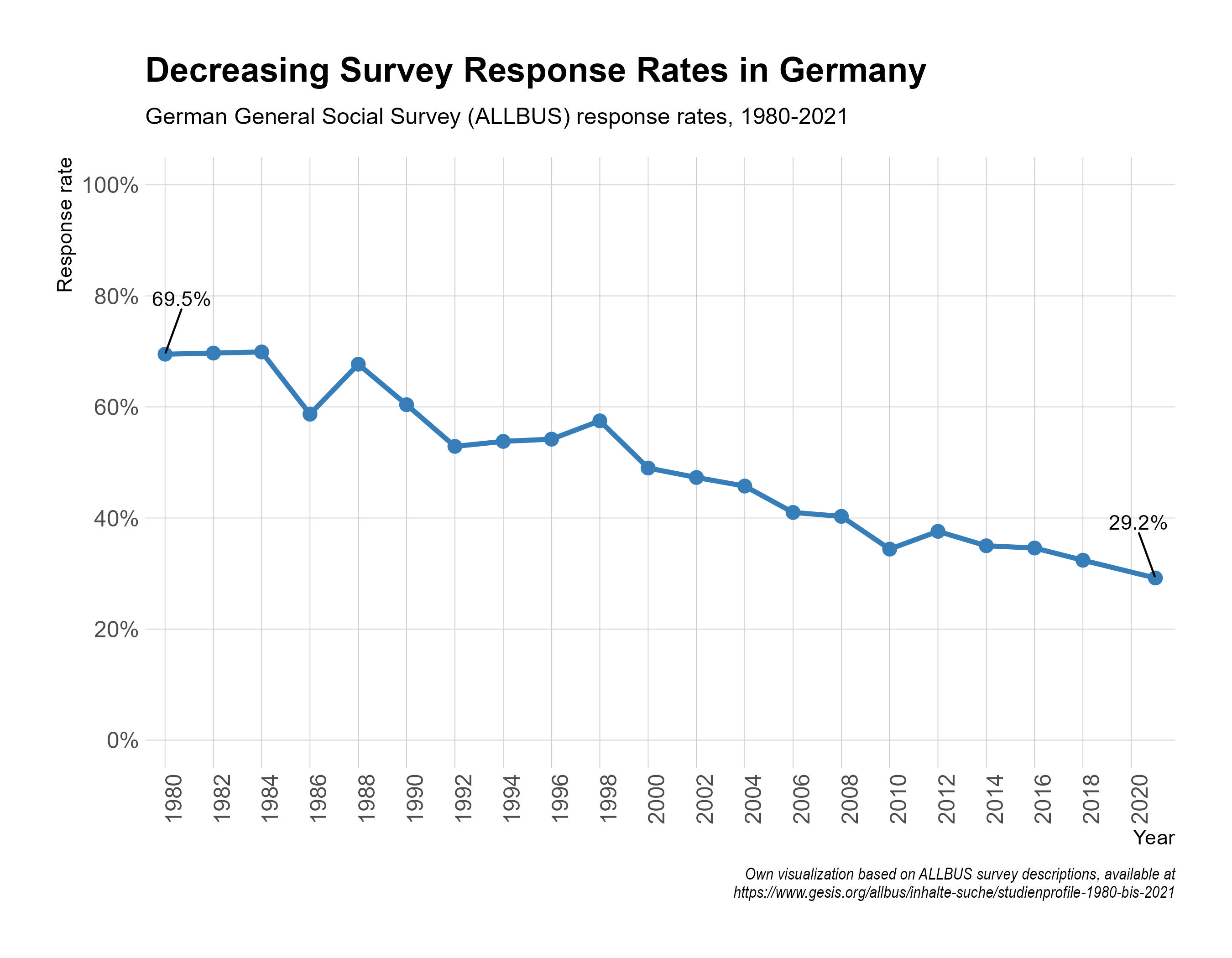 - declining trend in response rates (long term):